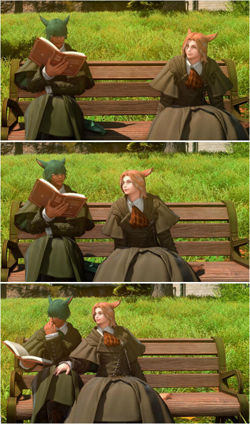 G'raha Tia: partneredWhile at the Studium, Rain'li looked up to G'raha and had dreams of eventually joining the Students of Baldesion himself. The eventual shift in the direction of admiration and the events of Shadowbringers left him with complicated feelings, but they finally figured out their relationship after Endwalker, not wanting to have any regrets.